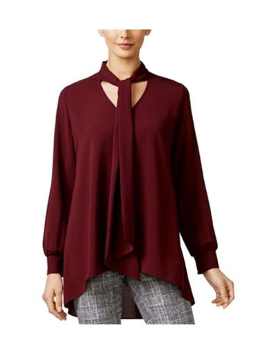 Alfani Women's Tie-Neck High-Low Blouse, Marooned,14
