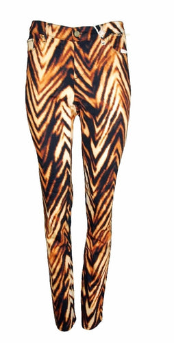 Anne Klein Women's Straight Leg Denim Printed Illusion Jeans, Brown, 2