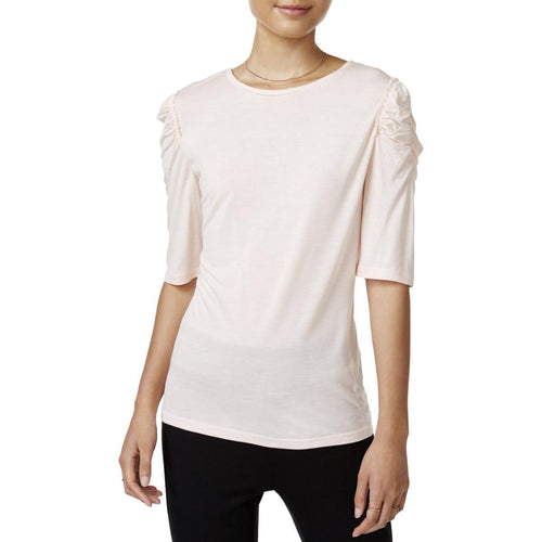 Bar III Women's Crew-Neck Ruched-Shoulder Top, Pink Cloud, M
