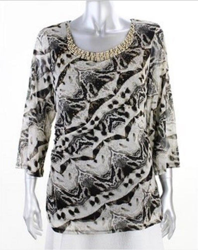 Alfani Women's Embellished Neck Ruched Sides Lined Blouse, Large