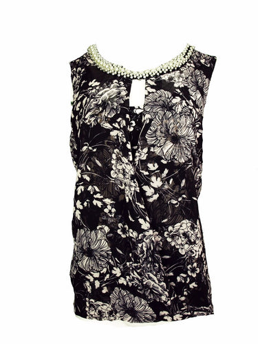 Alfani Women's Pearl Beaded Sleeveless Floral Printed Keyhole Top, XL