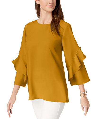 Alfani Women's Ruffled-Sleeve Zip-Back Top, Yellow (XXL)