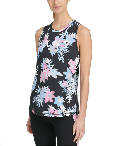 DKNY Women's Crewneck Sport Printed Logo Tank Top, Multicolored, L