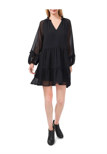 Vince Camuto Women's Chiffon Peasant Dress, Black, S