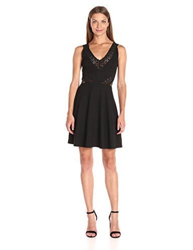 French Connection Women's Savannah Mesh-trim A-line Dress, Black, 6