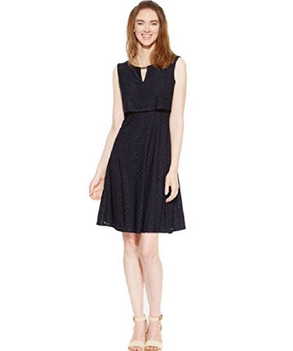 Alfani Petite Women's Cropped Eyelet Hardware A-Line Dress,Ink Black, 10P