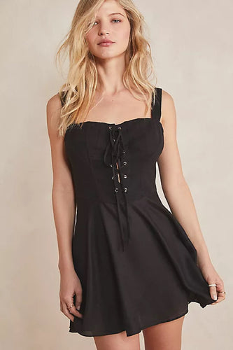 Free People Women's Not A Chance Corset Mini Slip Dress, Black, S