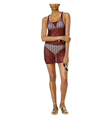 Miken Women's Junior's Crochet Racerback Cover-Up Swimsuit, Wine,S