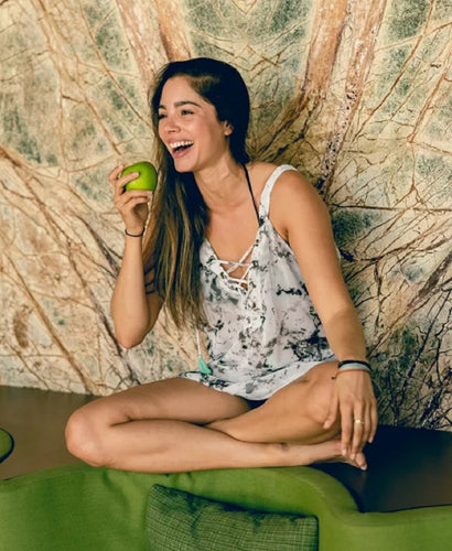 Miken Women's Lace Up Chiffon Cover-Up Dress, Just Marble, M