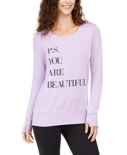 Ideology Women's You're Beautiful Thumb-Hole Fleece Top, Purple, XS