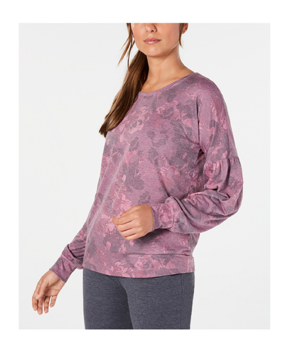 Ideology Women's Floral-Print Balloon-Sleeve Sweatshirt, Red Passion,L