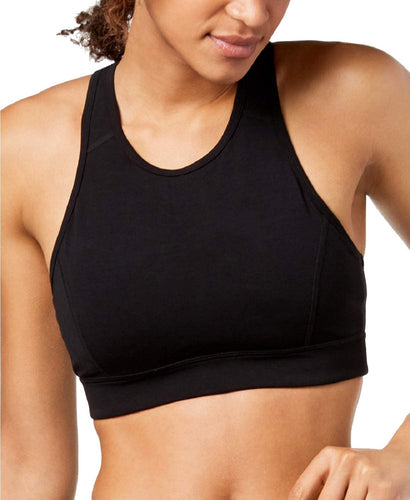DKNY Sport Women's Stripe Racerback Mid-Impact Sports Bra, Black, L