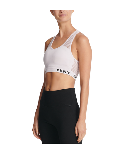 DKNY Women's Sport Mesh-Back Medium-Impact Sports Bra, White, S