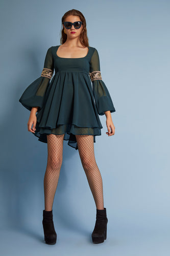 Belloago Women's Mina Square Neck Bishop Sleeve Dress, Green