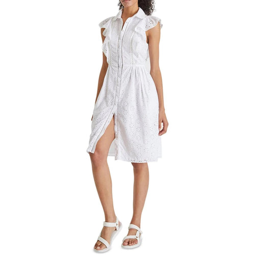French Connection Women's Duna Lawn Eyelet Fit & Flare Dress, White, 6