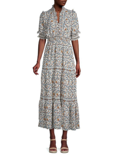 Max Studio Women's Tiered Floral Midi Dress, Cream Multi, M