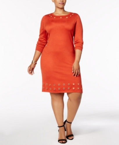 Ny Collection Women's Plus Size Grommet-Trim Sweater Dress, Dina, 2X