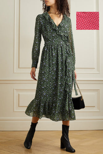 Michael Kors Women's Mini Floral Print Wrap Front Dress with Scarf, S