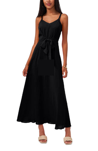 Vince Camuto Women's Tie Front Challis Sleeveless Maxi Dress, BLK, XS
