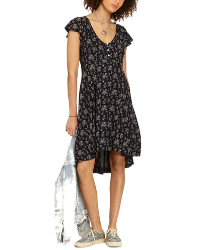 Chelsea Sky Women's V-Neck Lace-Print Ruffled Dress, Black, L