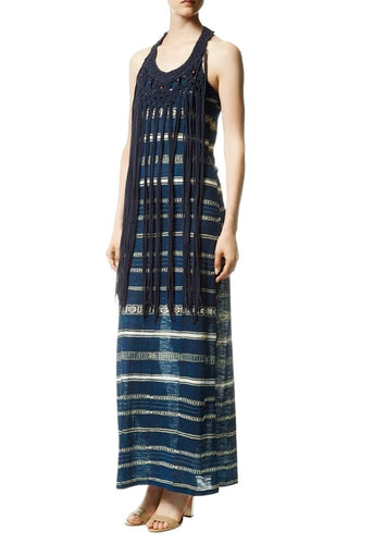 Denim & Supply Ralph Lauren Women's Fringe Macrame Maxi Dress, Blue, S