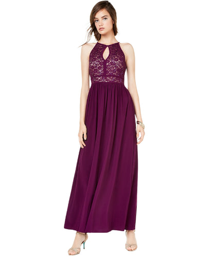 Morgan & Co. Juniors' Halter neckline Glitter Lace Gown, Purple, Size1