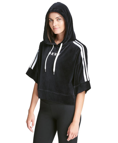 DKNY Women's Sport Logo Bell-Sleeve Velour Cropped Hoodie, Black, S