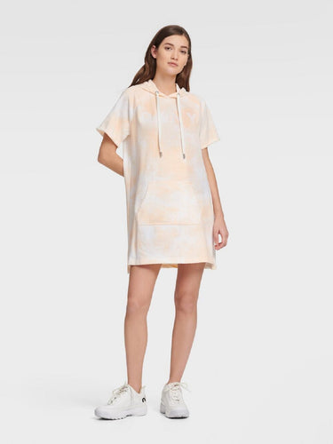 DKNY Women's Sport Tie-Dyed Logo Sneaker Hoodie Dress, Orange, XS