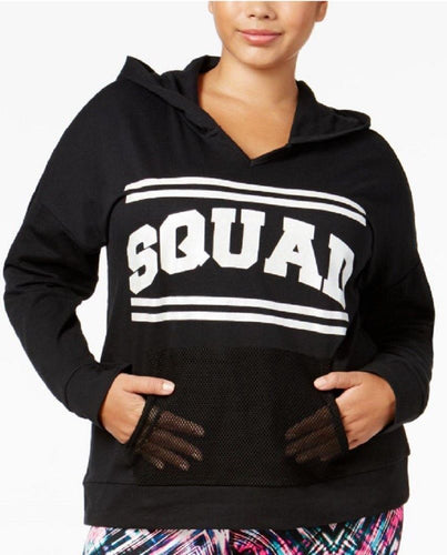 Material Girl Plus Women's Squad Graphic Athletic Hoodie, Black, 1X