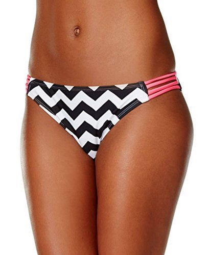 Hula Honey Juniors' Strappy Chevron Bikini Bottom, Black/White, L