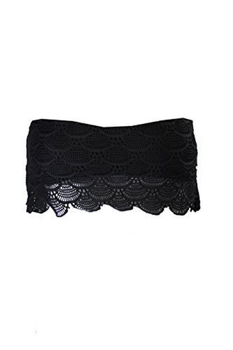 California Waves Junior's Crochet Overlay Bandeau Bikini Top, Black, XS