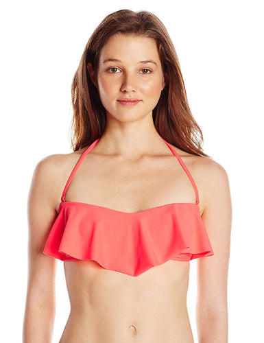Volcom Juniors' Simply Solid Flutter Bikini Top, Electric Coral, S