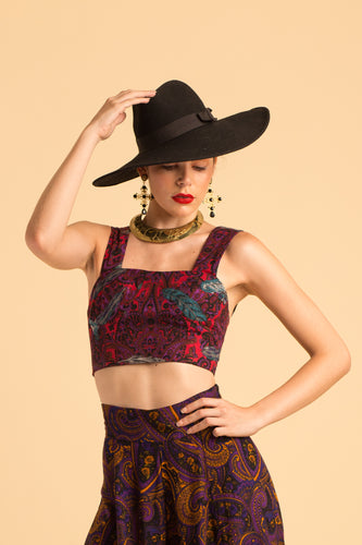 Belloago Women's Megan Printed Crop Top, Purple and Beige
