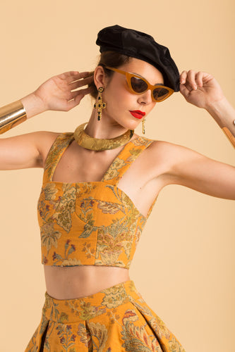 Belloago Women's Lucy Printed Crop Top, Yellow