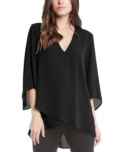 Karen Kane Women's V-Neck Hi-Low Kimono Sleeves Tunic Top, Black, XS