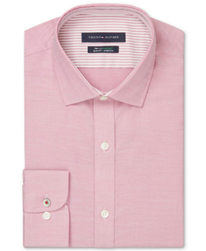 Tommy Hilfiger Men's Non-Iron Supima Stretch Dress Shirt, Pink,18.5