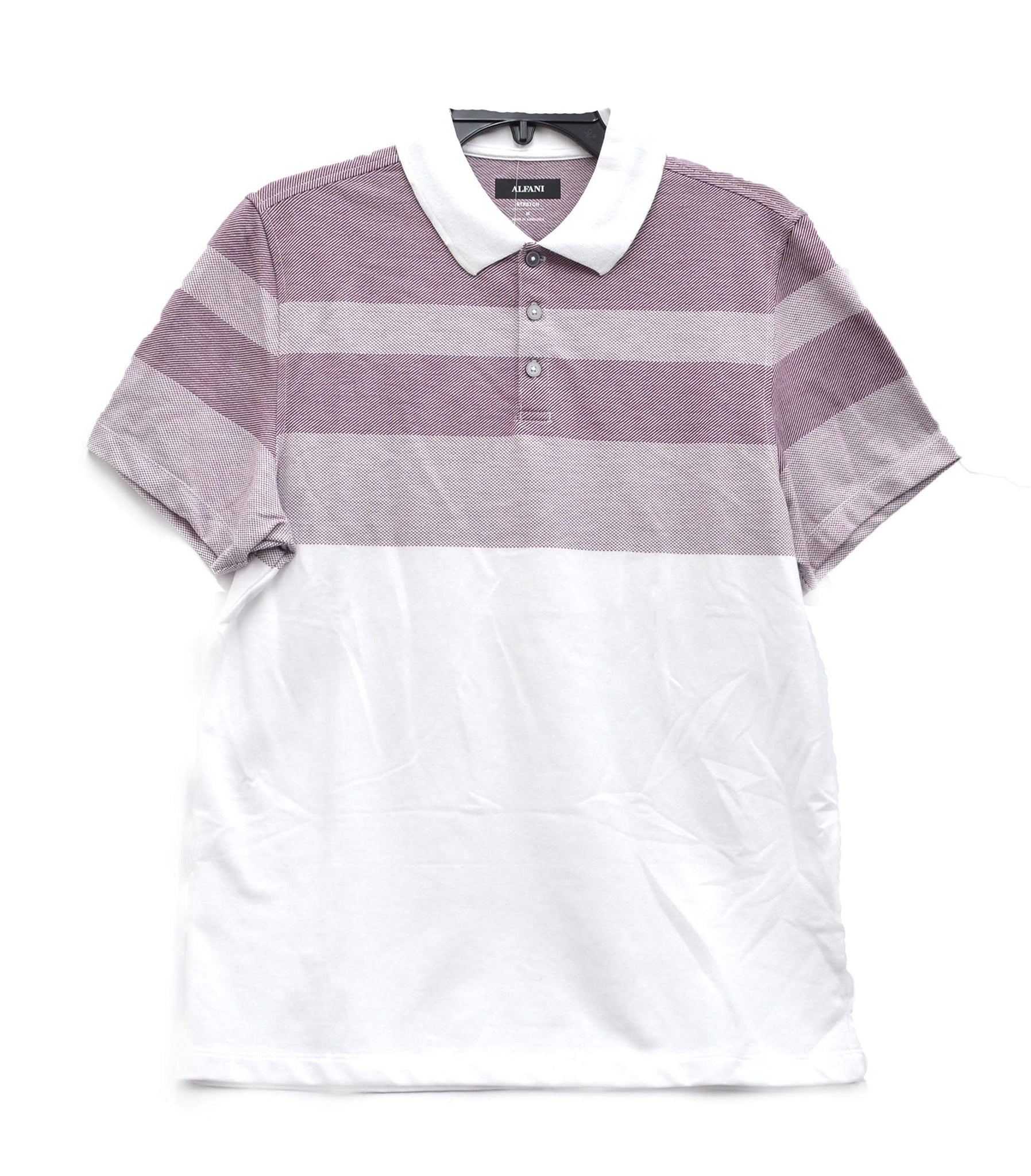 Alfani Men's Twill Striped Knit Polo Shirt, Ripe Burgundy, M