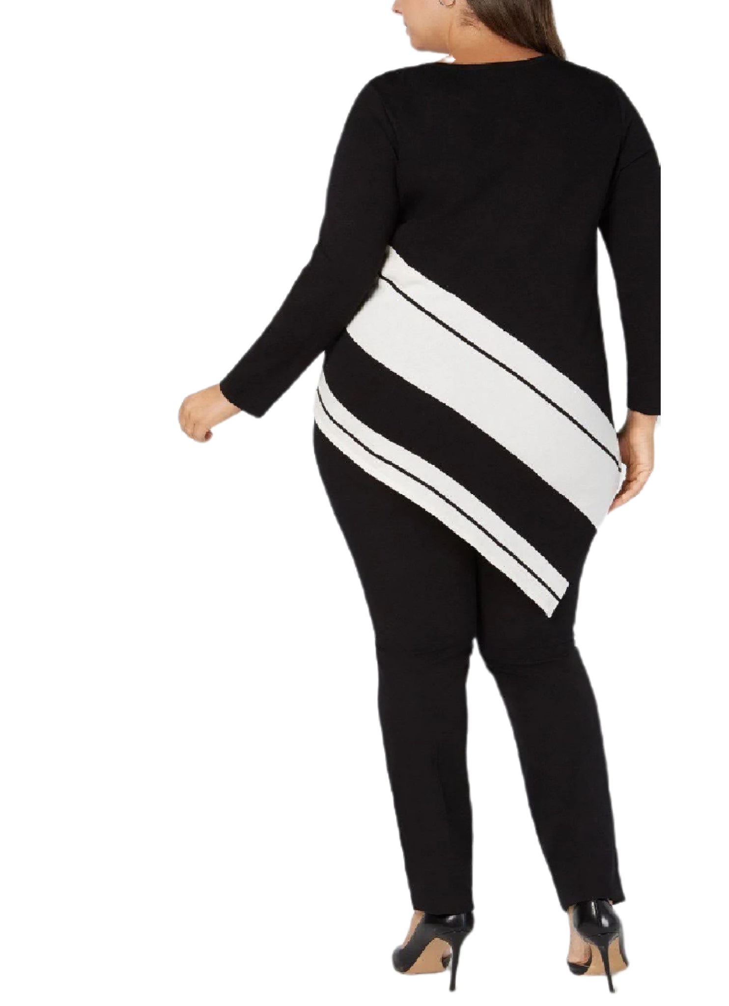 Alfani Plus Women's Asymmetrical-Hem Striped Sweater, Deep Black , 1X
