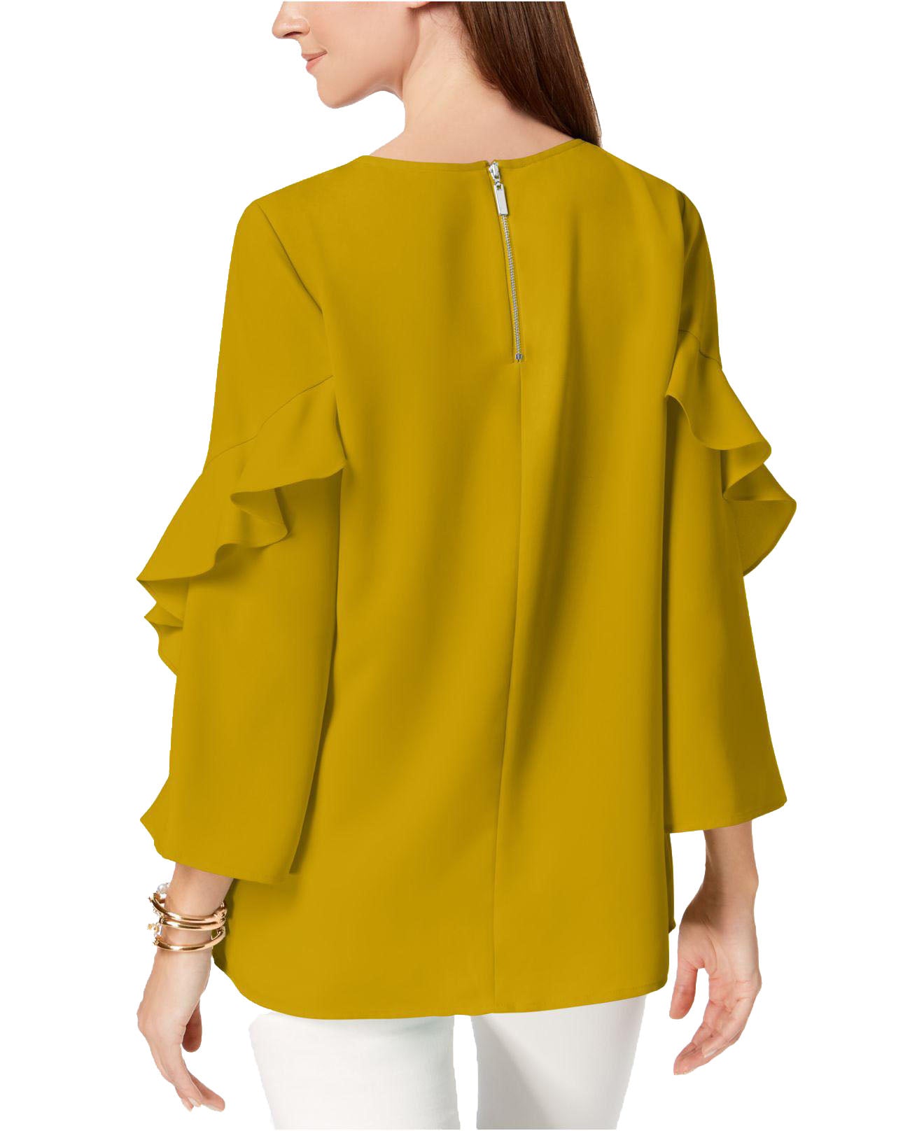 Alfani Women's Ruffled-Sleeve Zip-Back Top, Yellow (XXL)