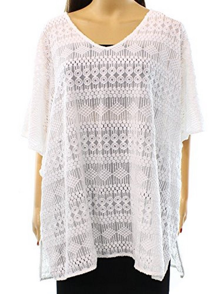 Alfani Women's Sheer Solid V-Neck Seamed Blouse, White, XS