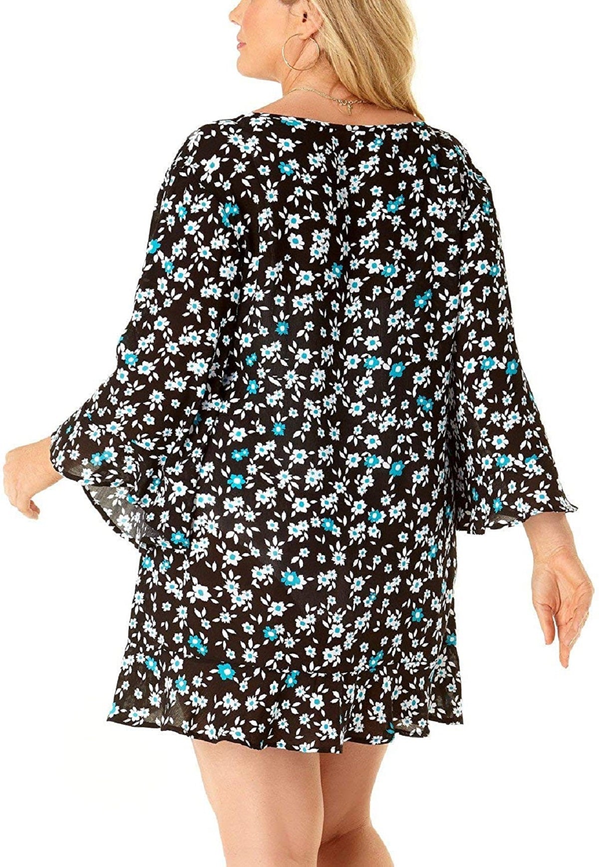 Anne Cole Women's V-Neck Flounce Tunic Cover Up Dress, Black, 22W-24W