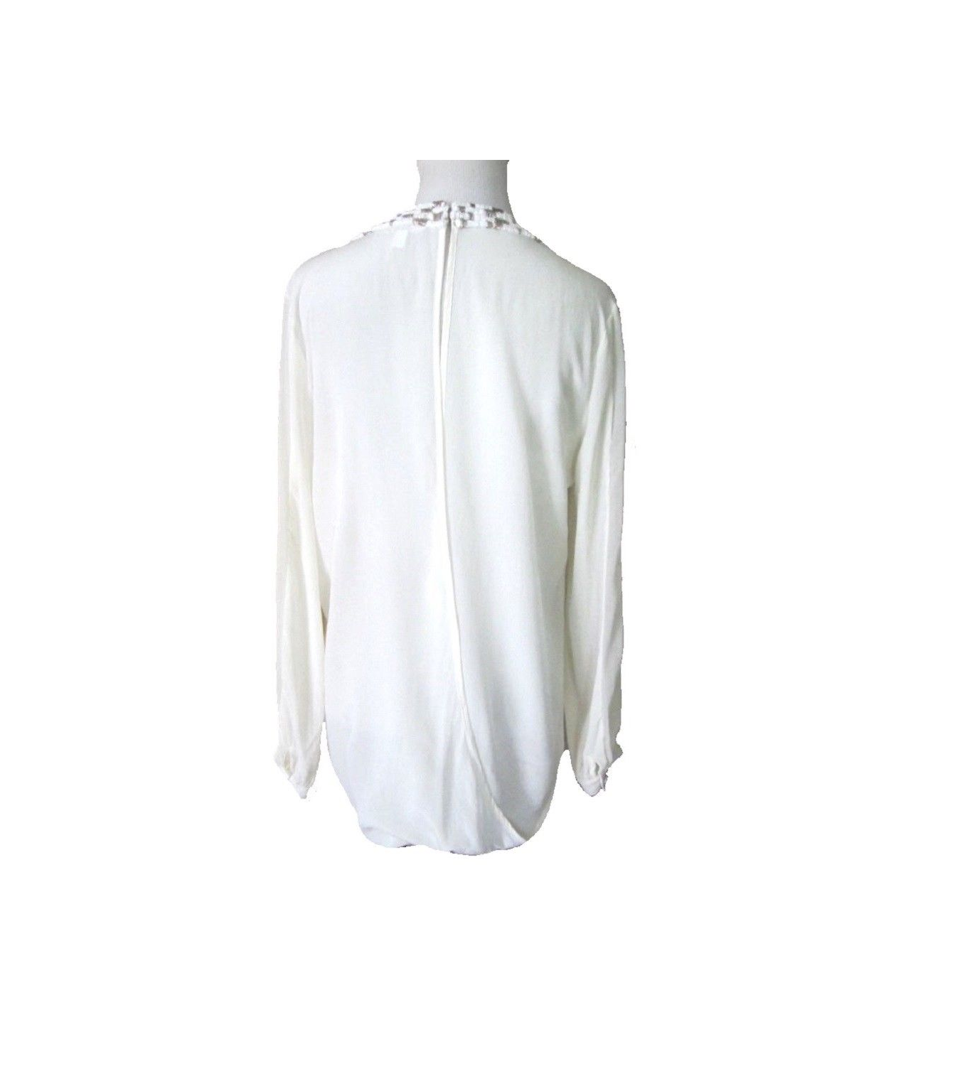 Aryn K Women's Jewel Neck Wrap Silk Blouse Top, White, M
