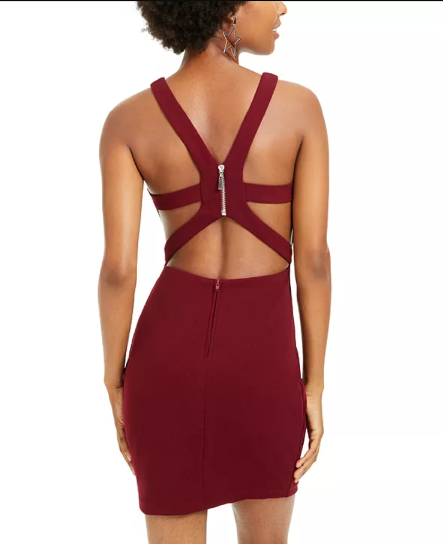 B Darlin Juniors' V-neck Strappy Sheath Sleeveless Dress, Red Wine, 0