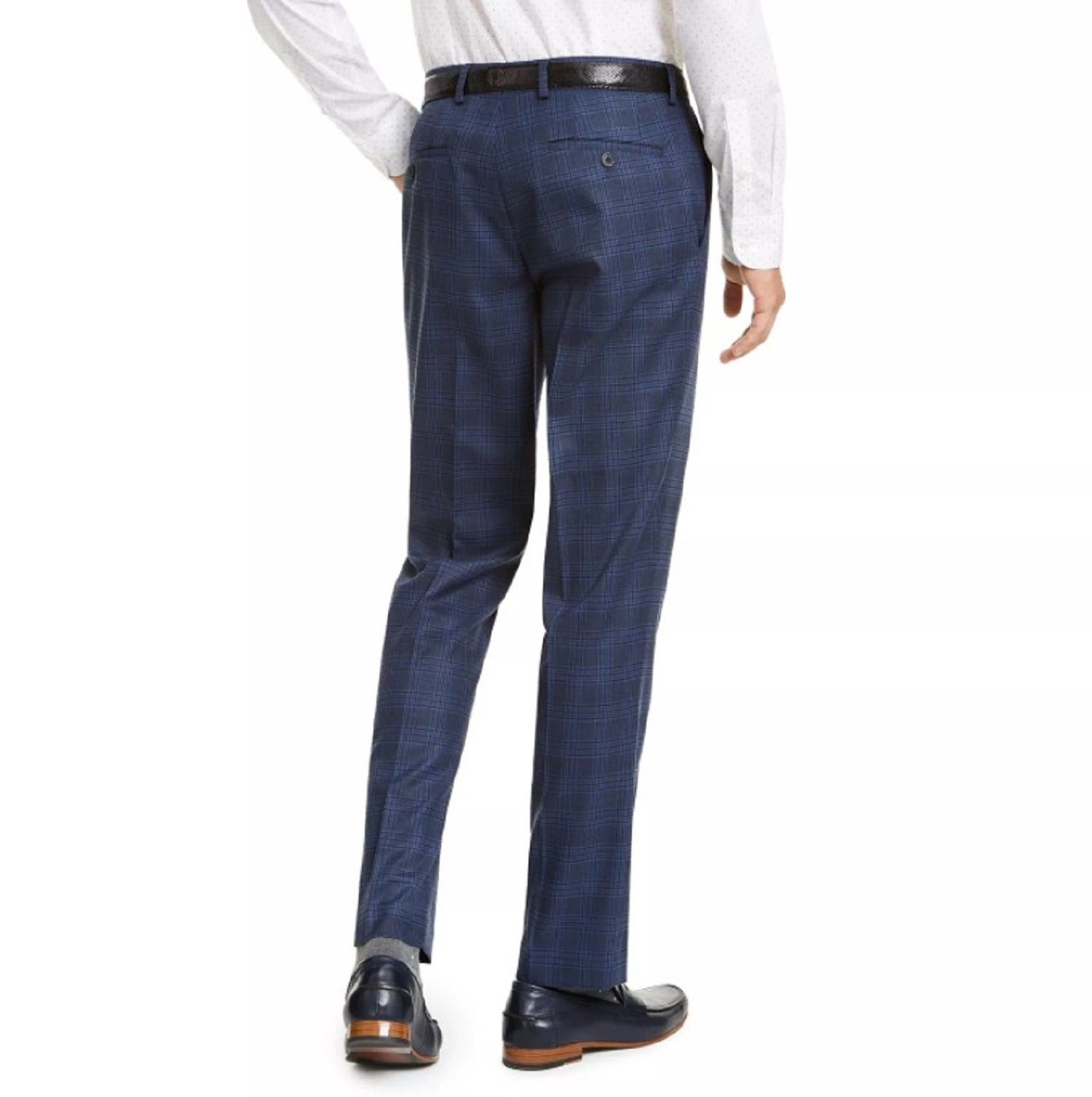Bar III Men's Slim-Fit Stretch Blue Plaid Suit Pants, Blue, 30Wx32L