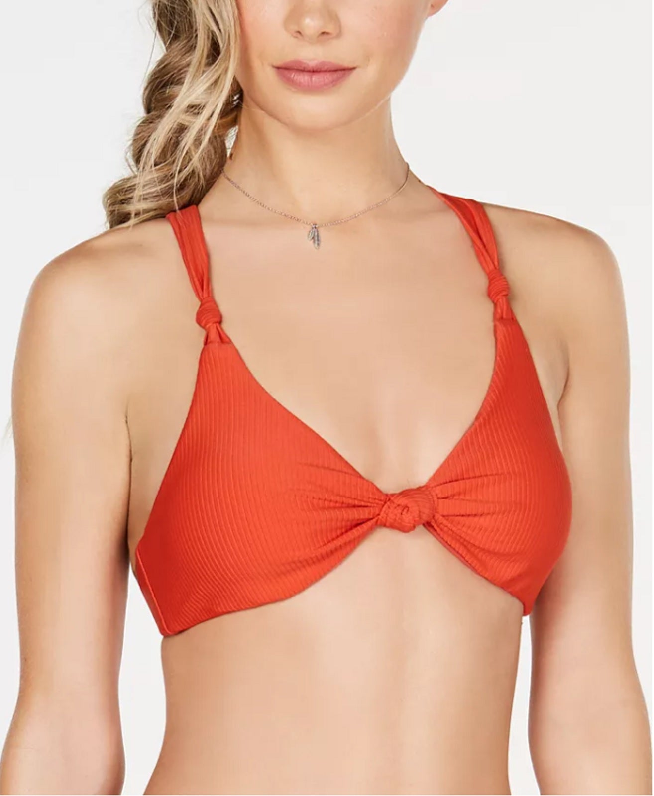 Bar III Women's Like It Or Knot Ribbed Bikini Top, Cinnamon, S