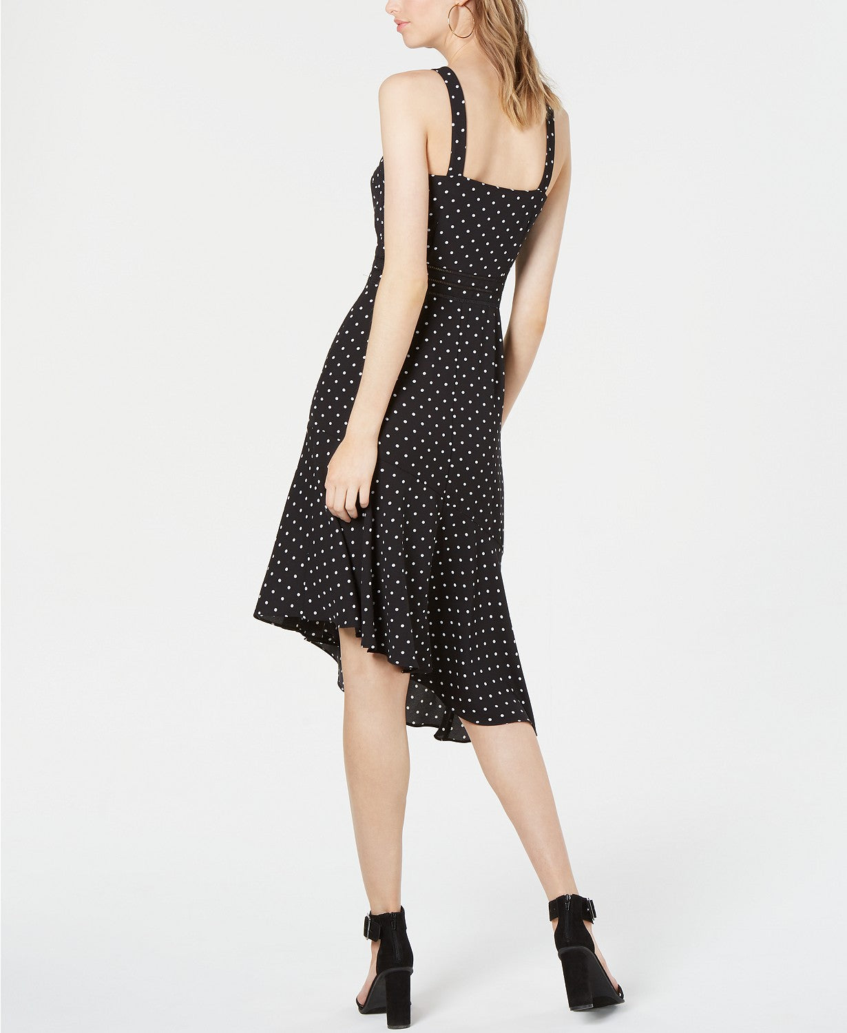 Bar III's sleeveless fit & flare dress moves with you with a playful polka dot print with a fun and flouncy asymmetric hem.