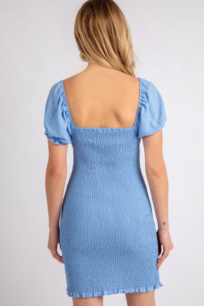 Woven Solid Mini Smocked Dress 100% POLYESTER