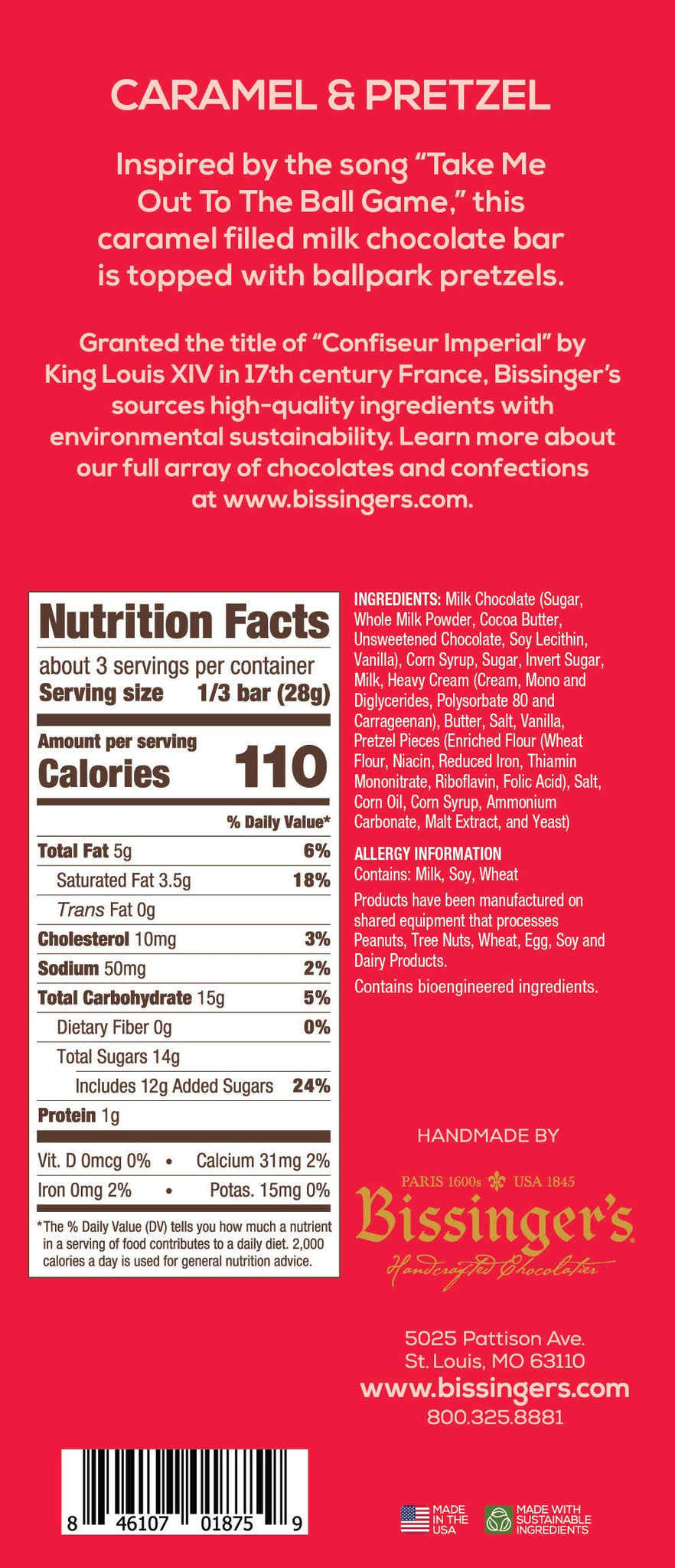 In honor of Saint Louis Cardinals Hall of Famer & Baseball legend, Stan Musial, we have created a chocolate bar with all your baseball season's favorites - milk chocolate, caramel and pretzels. What could be better than Bissinger's Milk chocolate, buttery caramel and crunchy pretzels.