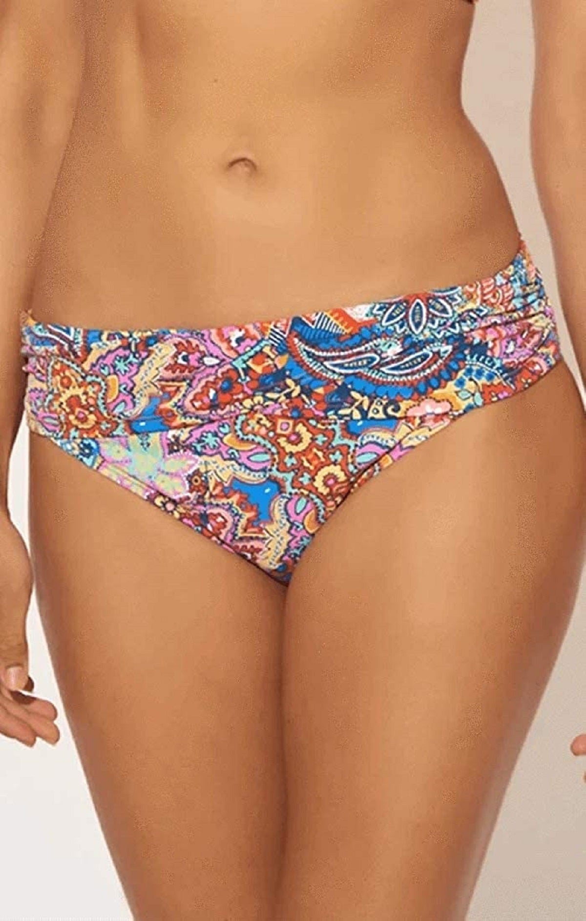 A vibrant paisley print brightens these bikini bottoms from Bleu by Rod Beattie, a fresh look with a ruched waistband that adds textural interest to your style.