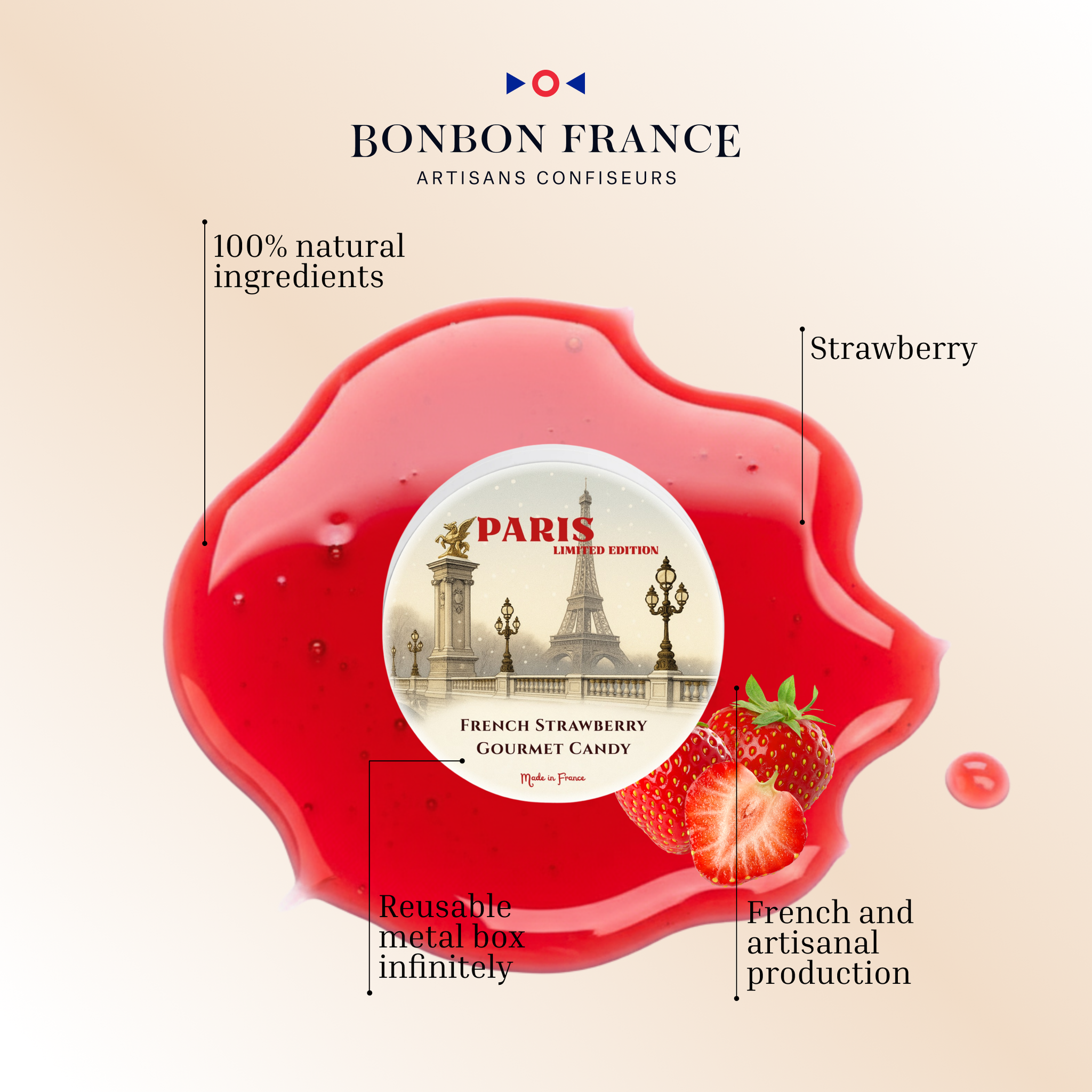 Bring a touch of French elegance to your shelves with Winter in Paris Strawberry Pastilles. Crafted by renowned French candy artisans, these delicate pearls capture the essence of strawberry in a refined, nostalgic treat. Traditionally prepared in copper basins, each pastille reflects the time-honored techniques of France’s gourmet candy heritage.